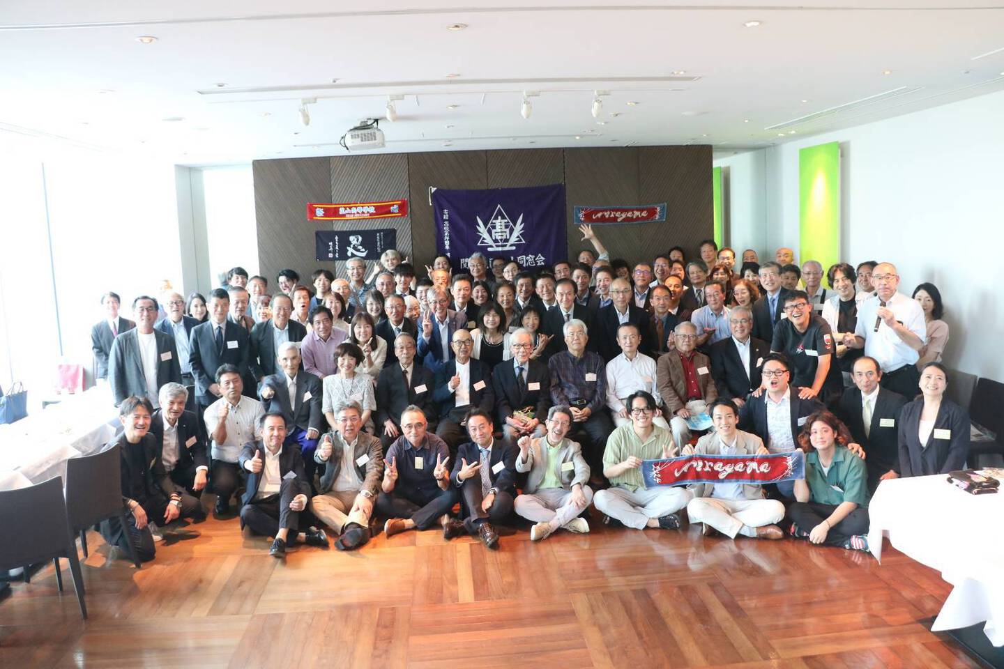 当日は、8名の恩師が来てくださり、上は旧制中学48回卒の方から下は高73回卒現在大学4年生まで100名近くの同窓生が集いました。