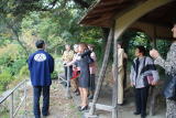 昭和4年に岩崎久彌氏の別邸として建てられた本館と庭園、村野藤吾氏設計本館の宴会場を丁寧に解説していただき、新館・離れの数寄屋で昼食会という、なんとも贅沢な女子会である。折りしも紅く色づき始めた伊豆の山々と繋がるように設計された庭園を歩くと、伊豆長岡から京都に飛び越えた錯覚に陥った。それもそのはず、庭園は京都の有名な庭師・小川治平衛の手による。この夏にテレビで見た京都の別荘群と同様に、俗世界を遮断して借景により伊豆一円が庭であるように感じさせる手法。夕方までの半日を過ごしただけなのに、ちょっとした旅行気分を満喫できるなんて・・・。伊豆にはまだ私が知らない雅なスポットが沢山ありそうだ。