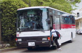 | 同窓生の皆さん! スクールバス運営委員会の野村(高19)です。 最近、韮山高校のスクールバスを見かけられた方も 多いと思いますので、導入の経緯と現況を報告します。 導入のきっかけは、伊東地区から部活の朝練に参加している生徒は、伊東駅を5:45に乗車しなければならず、保護者のご苦労も相当なものと察するところからでした。 当初は伊東駅−亀石峠−韮山高校の直行バスで計画 したのですが、車酔いや費用面での負担増が大きく、これは 断念し、次いで浮上したのが、熱海地区や函南地区の生徒 も利用できるよう、函南駅−韮山高校の直通バスの案でした。 これで伊東・熱海地区の通学時間は、30分以上短縮となる。 6月の伊東地区懇談会で出現して、函南駅案に到達した 時は、すでに秋も深まっていて、ここからは本当に戦いの 日々でしたが、4日間のテスト運行や、費用面での壁等々を経て、たどり着いたのが、遠征バスを求めていた、野球部 父母会との融合でした。 生徒たちの希望する登校便2便、帰宅便5便を叶えるには、自家用バスで運転手を雇い、自主運行する方法しかなく、野球部父母会がバス購入費用を負担し、月曜から金曜は、通学スクールバスとして、土日は部活遠征用として活用する こと、また管理運営の母体は韮山高校後援会に帰属し、運用の実務は、通学用はPTA、遠征用は野球部父母会がおこなうことで、実現できたわけで、この間、伊東、熱海、函南 地区の保護者の皆さんの協力と、後援会の方々の支援があって のことと、有難く思っています。(自家用バスでの運行なので、陸運局との詰めには神経を使いましたが) おかげさまで、無事、4月1日からの運行ができました。 予算ゼロで始めた、スクールバス導入計画は、無謀の感もするが、韮山高校だから、出来たこと、また、自家用バス運行も韮山高校 だから出来ることと、係る人たちのそれぞれの意識の高さには、敬服する次第です。計画の最初から、今もずっと協力を惜しみ無く 提供してくれている伊豆箱根鉄道には、感謝あるのみです。 現在、朝2便、夕刻5便(最終19:40韮高発) 60名強の生徒が 毎日、スクールバスを利用して快適な通学をしています。 土曜は朝1便、帰宅便3便、8月も運行し、夏季講習や部活 に利用されました。 バスは中古ですが、58人乗りの大型観光バスで、TVも冷蔵庫も付いて、シートはリクライニング、床下は大型のトランク付きで、 野球部の遠征にも、大活躍中です。 シンプルな、えんじの1本ライン、左右前後に韮山高校のネーム が品良く入っています。出会ったら、手を振ってください。