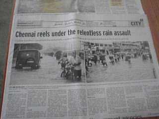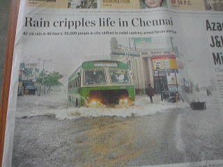 今月のおまけの写真 10月28日のインド最大誌 『THE HINDU』の1面です。 インドではチェンナイ大洪水もかなり大きなニュースとなりましたが、日本までは届いていなかったようです(笑) |