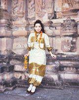 アブドウル君から贈られた金糸のパンジャム・スーツを着て、カジュラホの寺院群の中を見学しました。