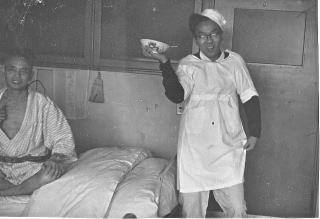 入院して一年、ストマイの注射と投薬の効果が薄れて来た頃、手術の宣告がありました。当時アメリカ式の直接医術が光学医療機械の発達とともに先進のリーダーと認識されてきたのです。遠藤さんとは手術の日程が近かったので、この頃私にお声を掛けられたのでしょう。つまり胸部・部分手術の同期の関係になるわけです。術後も廊下でワイフに“栗ちゃん順調ですよ”そして遠藤さんの茶目っ気虫が動き出したのでしょう。レントゲン撮影の際に絆創膏で患部にマークをつけたりしました。私の手もとに数枚の証拠写真が残っています。披露しても多分許していただけるでしょう。
