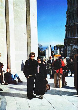 翌日はイタリアの青空に迎えられ郊外電車と満身傷だらけの市バスを乗り継ぎ一時間、ピサの市街に入りました。毎年数ミリ傾斜が進んで来たので地盤工事の最中とかで斜塔は登上禁止でした。
