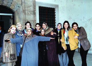 いよいよイスタンブルのハイライトはトプカプ宮殿美術館の鑑賞です。オスマン帝国時代から世界中の属国からの献上品や、財に任せて購入・収集し加工した宝物類、豊富な収蔵品の素晴らしいこと!中でも世界第二の大きさ品位を誇るスプーンダイヤモンドの首飾り・世界最大のグリーンエメラルドを三個、柄の握り面のダイヤ群に埋め込んだスルタンの短剣・黄金張りの側面に点々とダイヤ・ルビー・ヒスイ類を装飾したベッド・景徳鎮の青磁の壷や伊万里の絵巻燦然の飾り皿 もう圧倒されるばかりの展示品の行列でした。素晴らしさを反芻しながら美術館の出口で10人くらいの若い美女軍団に呼び止められて大騒ぎのなか記念撮影とインタヴュウ。イスタンブル大学の女子大生達でした。ハレムの美女もかくやと思うイスラムの若人との出会いの醍醐味です。宮殿の庭を退出ゲートに向かう途中、追いついてきた白いコートの中年の紳士が「貴方のワイフはトプカピの宝物と同じですよ 幸せにね」私は Thank You と言うのが精一杯でした。