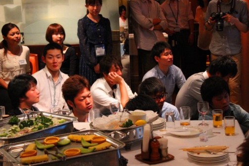 | 韮高卒の学生と社会人の交流会 2012/6/16 @東京丸の内 ポールスター 6月1日の関東地区韮山同窓会でお会いした高木渉さん(高62)からのご案内に面白そうな企画だと急遽個人的に参加させて頂きました。会場に着いた際、一瞬、もしかして大学生の同窓会に顔を出しちゃった感じ?と思いましたが、会が始まるとそんな思いは一変し、学生さんの方から積極的に話しかけて下さり、最近の若い方はしっかりしてるなぁと感心させられました。もちろんバイキングに夢中な男子学生もいましたが、5000円(学生3000円)払ってるわけですから当然です。それはそれでらしくていいなと思いました(^^) |